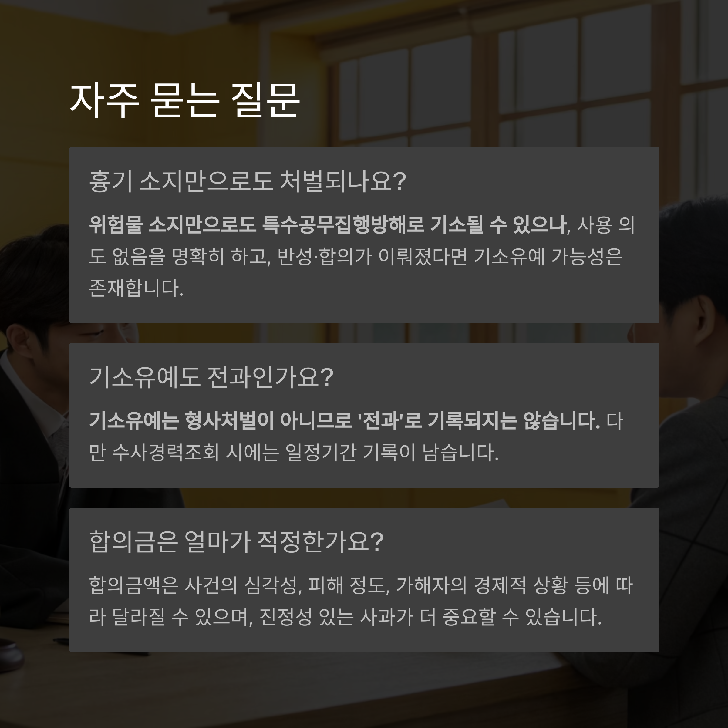 "흉기를 들었지만 사용은 안 했는데도 기소유예가 되나요?"