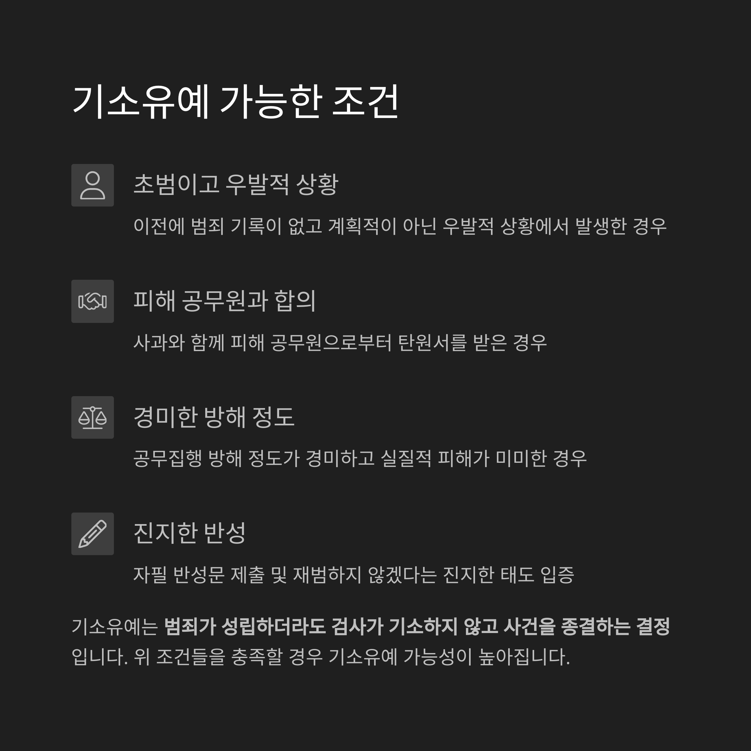 #특수공무집행방해 #기소유예조건 #형법144조 #공무집행방해처벌 #초범감형전략 #검찰기소유예