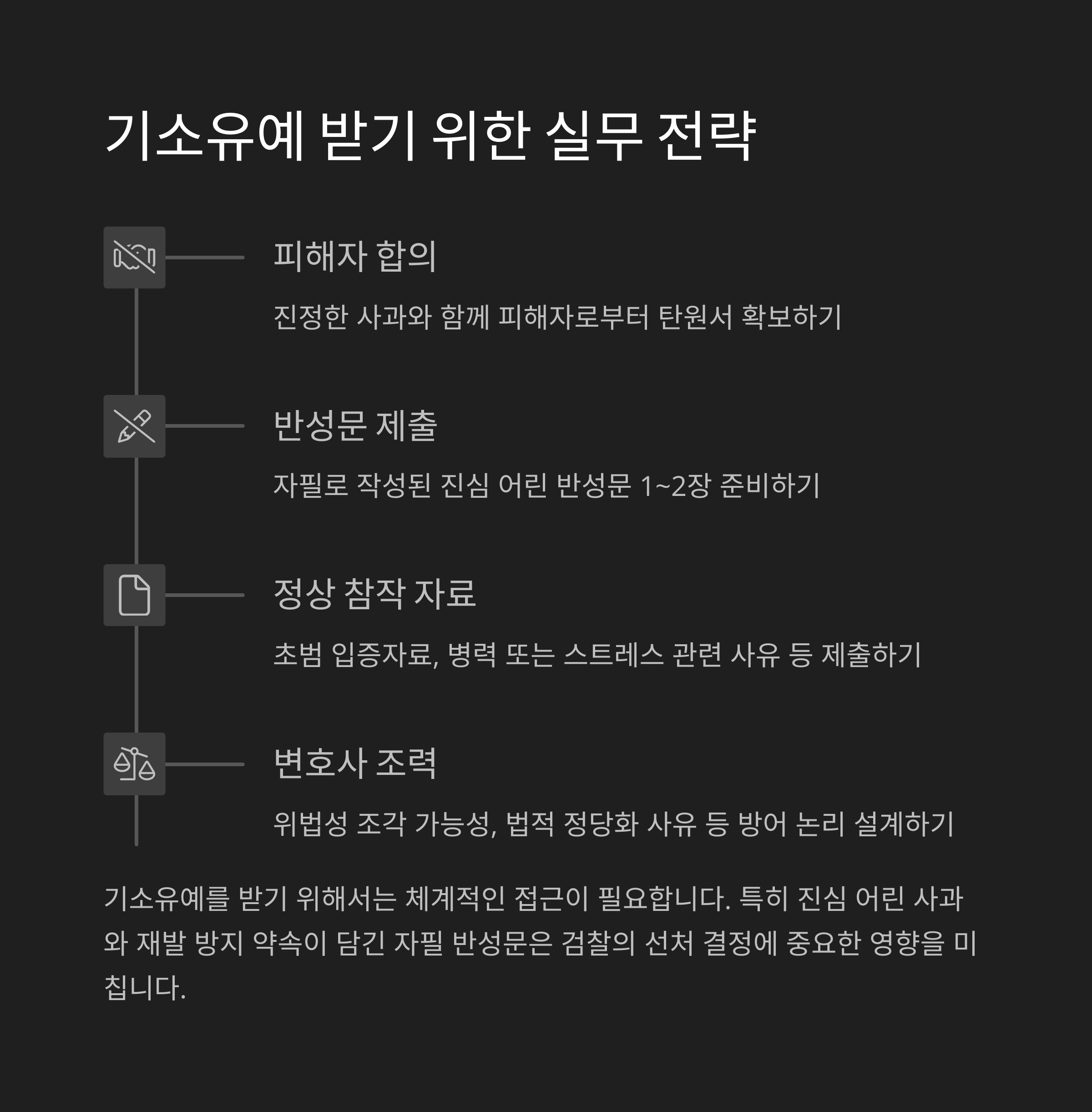 다음 조건에 해당할 경우 기소유예가 가능할 수 있습니다.